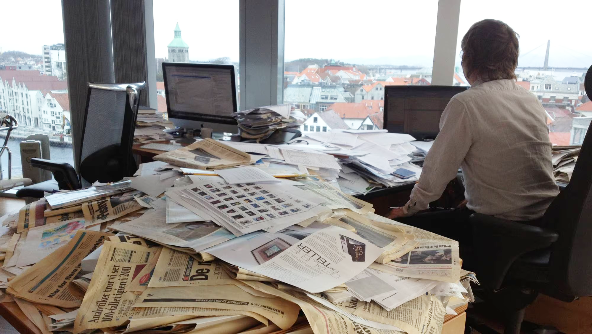Etter oppstart av det globale aksjefondet Tveteraas Finans, ble finansaviser og aksjeinformasjon trålt. Dette medførte masse papirer.